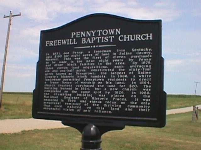 In 1871, Joe Penny, a freedman from Kentucky, paid $160 for eight acres of land in Saline County, Missouri, just south of Marshall. This was the first of eleven purchases Penny and other black families in the area made during the next eight years. By 1879, these eleven land acquisitions, each averaging six and one-half acres, constituted the sixty four acres known as Pennytown, the largest of Saline County’s historic black hamlets.