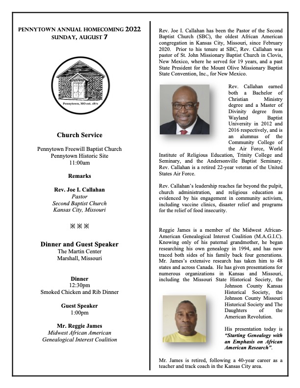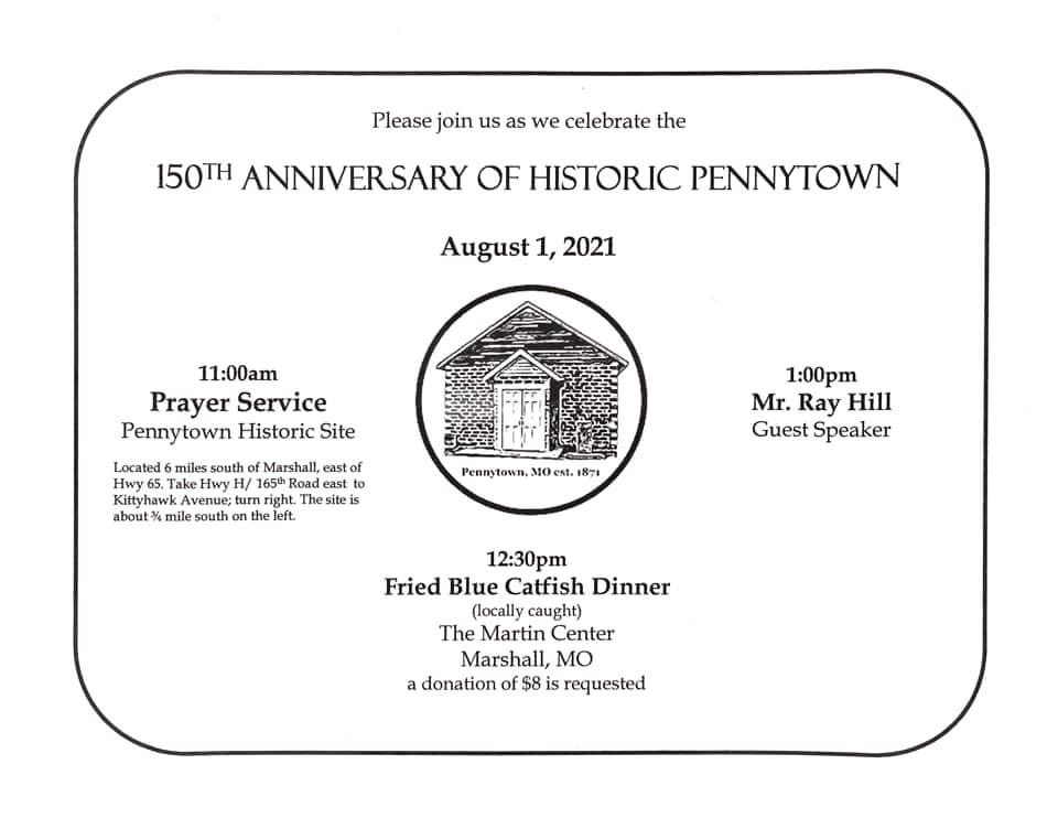 It’s almost time for Pennytown Homecoming 2017! We invite everyone to come join us in celebrating the history and legacy of Pennytown, MO, an historic black hamlet of Saline County.